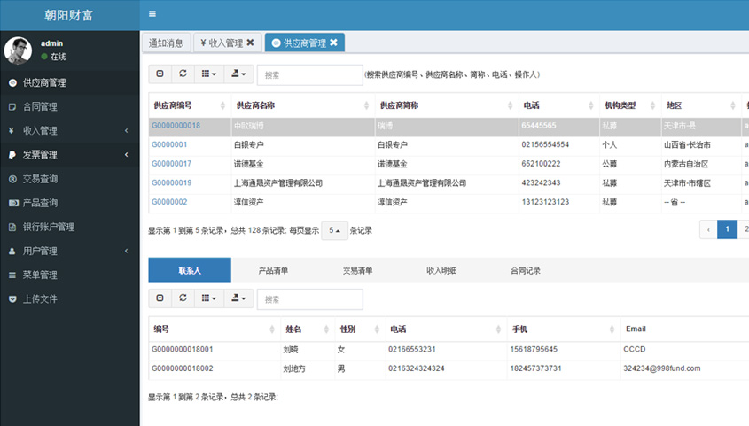 • 合同管理:  供應合同管理、合同信息、收入信息等