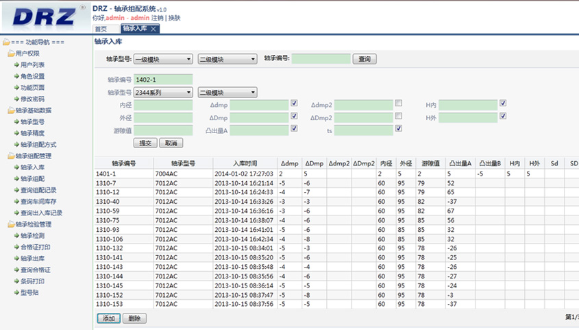 - 軸承基礎數據:管理軸承相關(guān)的基礎數據,包括軸承的型號、精度、組配方式等