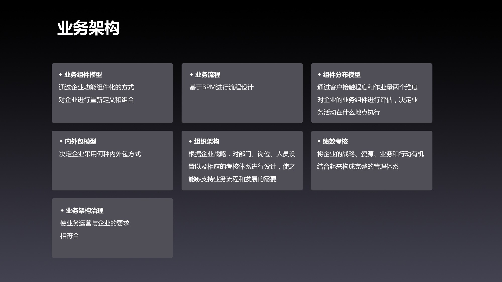 業(yè)務(wù)架構從企業(yè)高層視角,“智匯”助力領(lǐng)導者、董事會(huì )與股東,借ARC - BSC平衡計分卡系統等決策層工具,清晰洞察運營(yíng)計劃、價(jià)值與挑戰,精準錨定戰略方向。在業(yè)務(wù)模式重塑上,以業(yè)務(wù)組件模型為抓手,通過(guò)企業(yè)功能組件化的方式,對企業(yè)進(jìn)行重新定義和組合,聯(lián)動(dòng)“數盈”數據資產(chǎn)運營(yíng)等服務(wù),打破傳統邊界,構建契合戰略的全新業(yè)務(wù)運營(yíng)模式 。